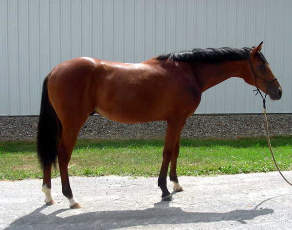 Just Mu 15 yr. old broodmare 16.1 H, bay thoroughbred mare (Mykish x Swoon My Way). Mu showed in the jumpers prior to having five foals. She is sound, an excellent mom and has produced some very nice large foals. She is registered with the Jockey Club and the AQHA. Would consider a lease. A good home is the most important factor.
