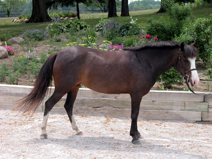 Lilly Lilly is a 10 year old blue roan pony.  She is quiet and a quick learner.  She stands about 12 hands and is looking for a loving home.  Has the potential to be a very nice hunter pony.  For now she would make a great lead line and walk trot.  Price is firm at $ 2500.